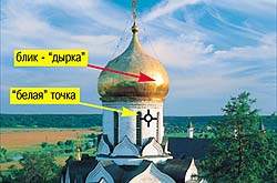 Позолота купола отражает лучи солнца, и блик должен быть напечатан «дыркой». Настоящая белая точка находится на «барабане» |